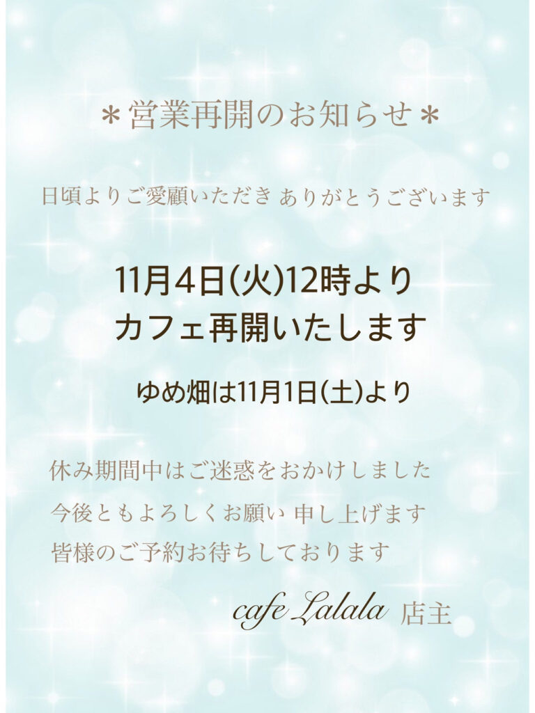 11月4日(火)12時よりカフェ再開いたします🙌✨