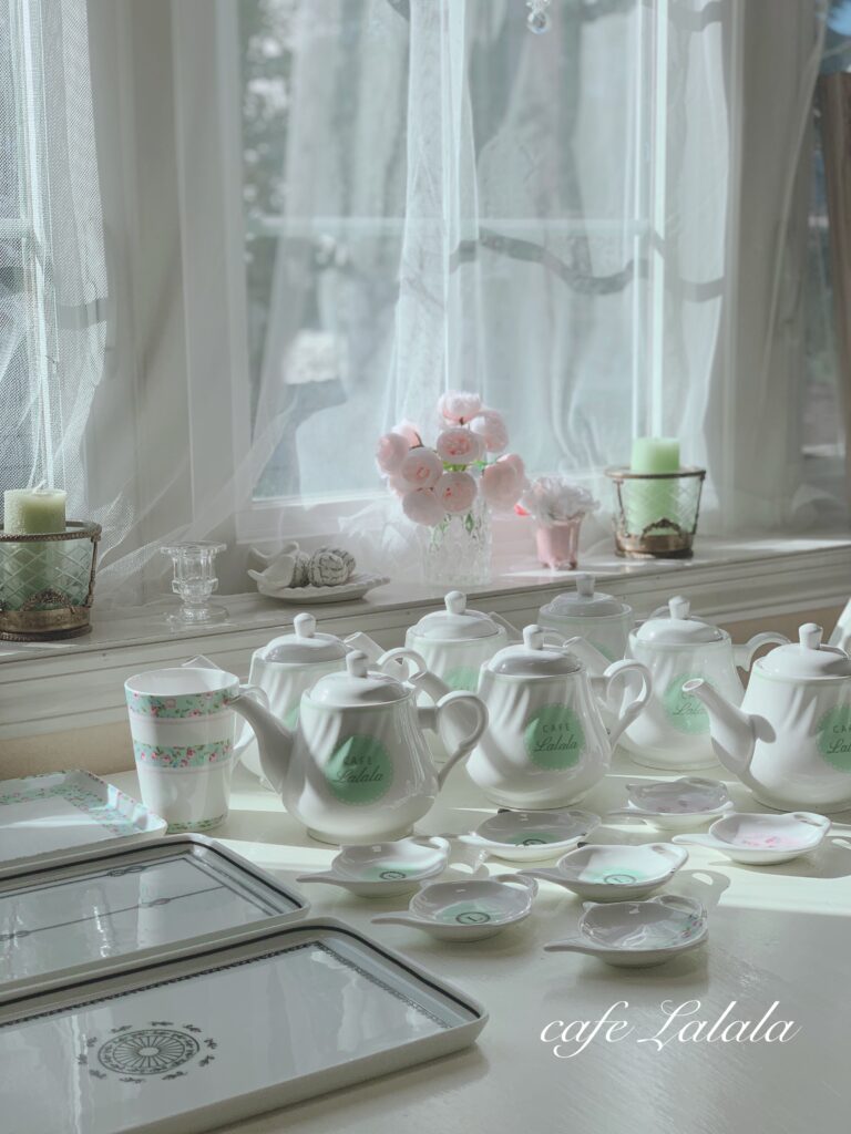 お店で使うポットやお皿をポーセラーツでオリジナルを作りました🫖